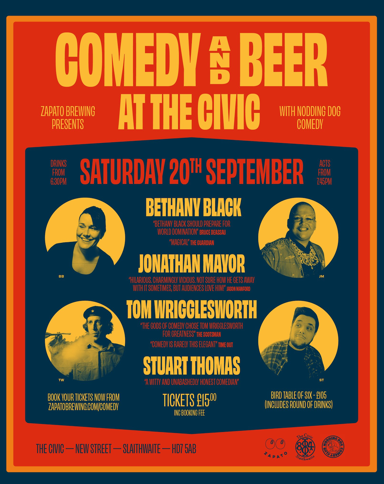 After a ridiculously funny launch event, we're doing it again! Zapato Presents Comedy + Beer Night #2 at The Civic in partnership with the renowned Nodding Dog Comedy, and this one’s loaded with radio and telly talent!