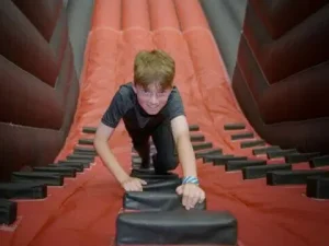 Bounce Summit. Two exciting elements featuring a Climb Wall and Summit Slide, designed to boost excitement.