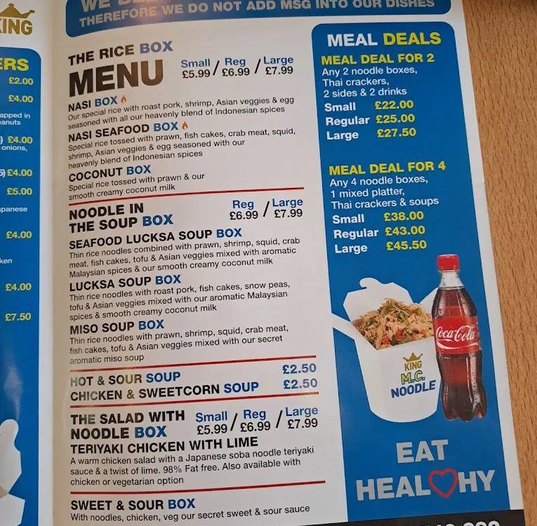 Mc Noodle King in Huddersfield is a vibrant and popular takeaway that specializes in East Asian noodle and rice dishes, offering a quick and flavorful meal for locals and students alike. The core of their menu revolves around customizable noodle and rice “boxes” that are generously portioned and affordably priced, making it a go-to spot for great value. Customers can choose from a wide array of options, including signature favorites like the spicy Hot Box with a secret chili sauce, the balanced Combo Box tossed in traditional oyster sauce, or the popular, peanut-infused Satay Box. This expansive menu also includes vegetarian options, seafood specials like the Mee Gee Seafood Box, and various Thai-style curries.